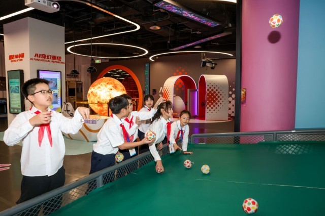 ↑ 4月14日,在中国宋庆龄青少年科技文化交流中心,越南青年“红色研学之旅”之“不忘初心”研学营少先队分团成员进行科技体验。