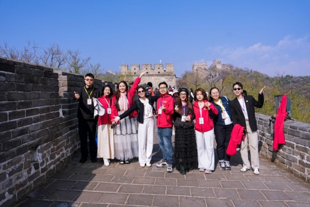 ↑ 4月14日,中越青年在北京参观八达岭长城。