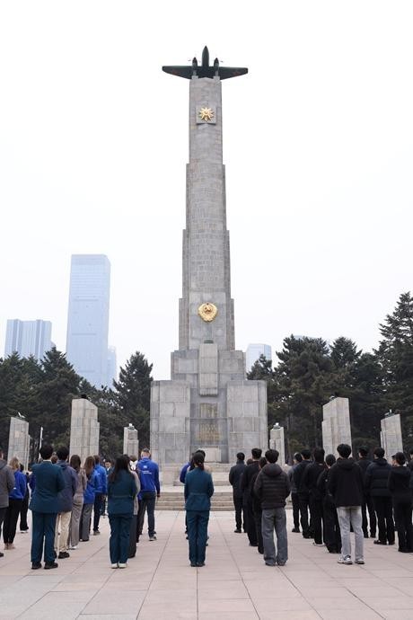 3月29日,中俄青年在苏联红军烈士纪念塔举行纪念活动。主办方供图