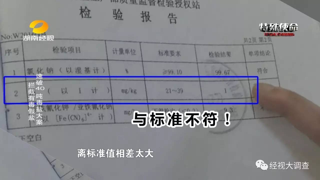 那么,这批近40吨的食用盐究竟有没有问题呢?工商部门对其进行了抽样检测,检测结果显示,这批盐的含碘量只有标准低值的二十一分之一,更可怕的是,这批盐中检测出亚铁氰化钾的含量竟超过标准值31倍。
