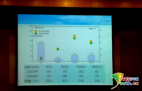 中国青年网北京1月21日电(记者 崔宁宁)“PM2.5年均浓度为73微克/立方米,比2015年降低9.9%,是近年来降低幅度最大的一年。比2012年下降了23.7%。”