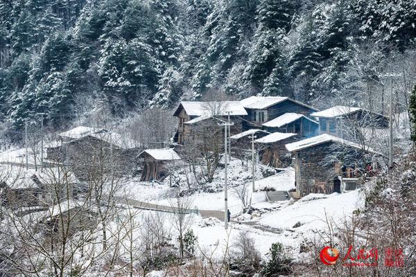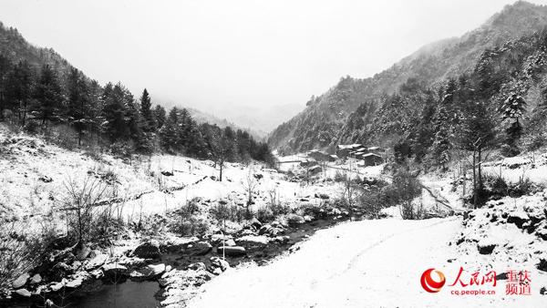 人民网重庆3月15日电 3月13日夜间起,受波动气流影响,重庆城口县降温明显,海拔1000米以上地区又下起了雪花。15日,城口县高楠镇方斗村及东安镇黄安坝景区的最低气温降至-4℃,积雪深为5㎝,皑皑白雪将整个山区覆盖,如同进入了童话世界一般。