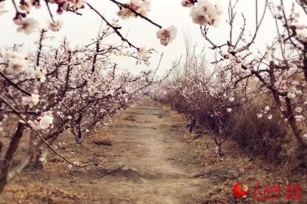 人民网托克逊3月19日电(韩婷) 春日的暖阳洒在吐鄯托盆地,万亩杏花竞相绽放。3月19日,记者在新疆托克逊县郭勒布依乡的河东生态杏花园中看到,杏园内热情的歌舞和盛开的杏花让游客感受到了浓浓的春意,不少游客驻足欣赏,拍照留念。