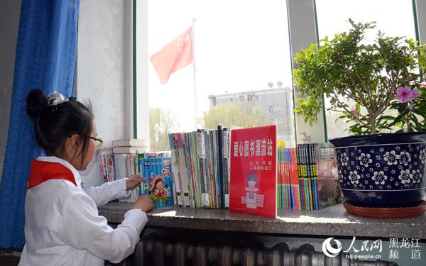 哈尔滨市新成学校爱心图书漂流站。焦洋 摄