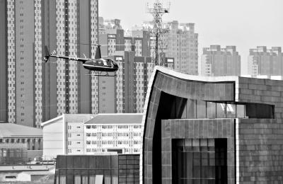 R44直升机搭载乘客在大同上空盘旋。 李冬宾摄