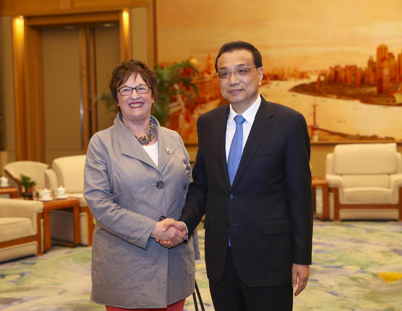 李克强表示,中国重视发展同英国的关系。当前国际形势下,中英两国作为安理会常任理事国,在双边层面加强互利合作,在国际事务中保持沟通协调,对于双方、地区乃至世界都很重要。中方愿同英方巩固互信,落实好核电、金融等重点领域合作共识,打造新的合作亮点,推动中英关系与合作迈上新台阶,并且共同发出致力于稳定、开放、繁荣,携手推进贸易投资自由化便利化的积极信号。