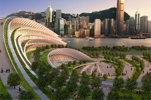 6月21日,广深港高铁西九龙站外墙玻璃天幕正在安装中。陈育柱 摄