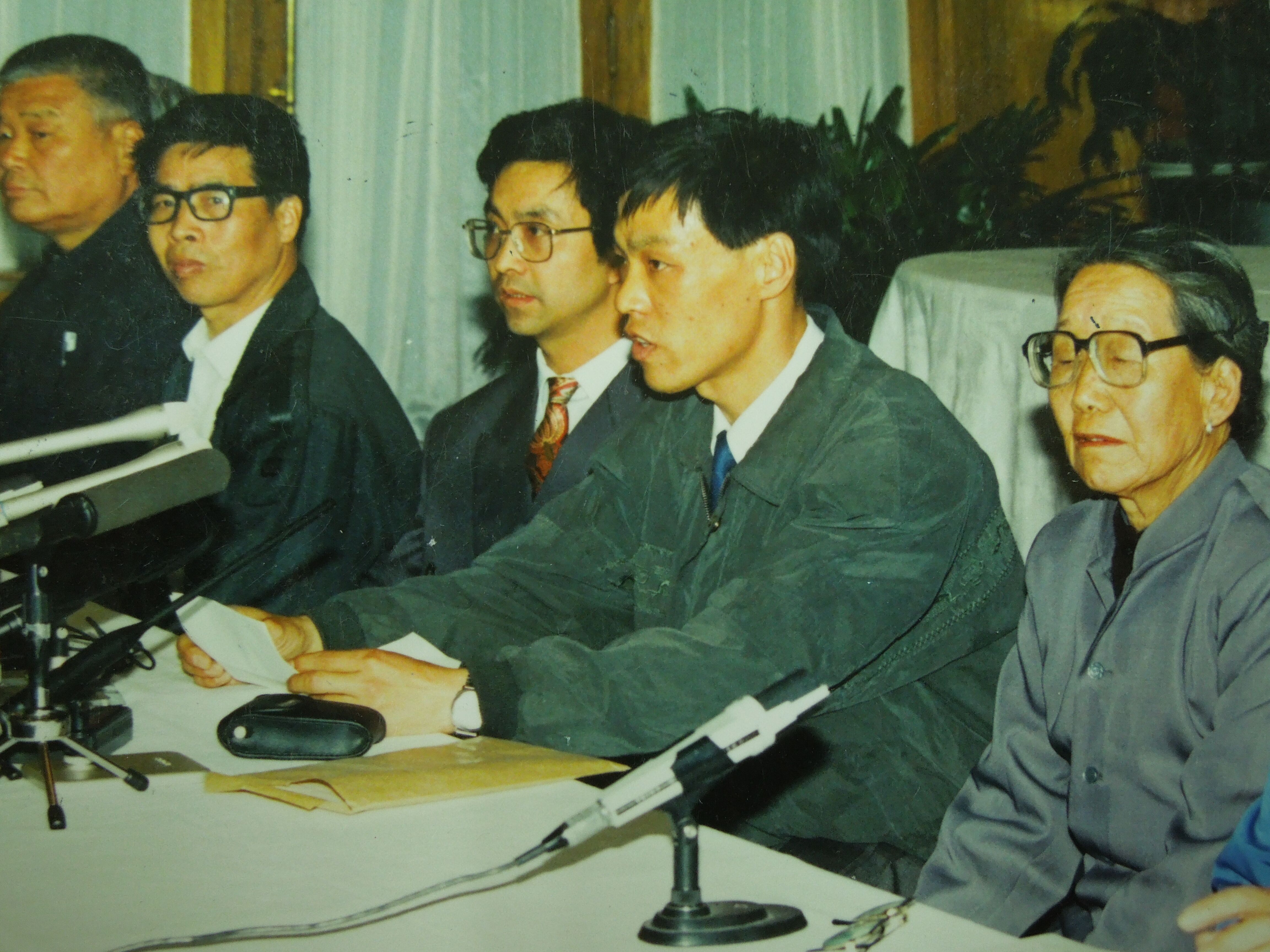 1994年中国二战受害者起诉日本政府新闻发布会,右一为《二十二》中的李秀梅老人,右三为童增先生。 童增供图