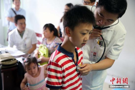 资料图; 医生在给儿童做检查。