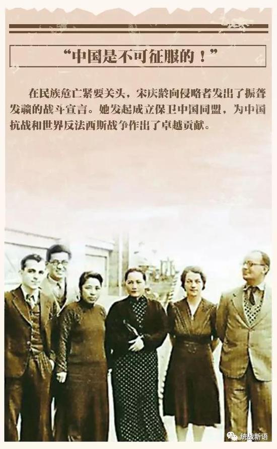 在灾难深重的半殖民地半封建的旧中国,她毅然选择了与人民站在一起、为人民谋求幸福的道路。中华民族处于生死存亡的紧要关头,宋庆龄创建保卫中国同盟,为中国人民抵抗外来侵略的正义战争,积极争取世界进步人士的有力支援,在中国与世界之间架起了一座共同反法西斯的友谊桥梁。