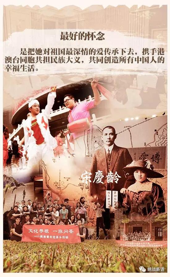 最好的怀念,是把她对祖国最深情的爱传承下去,携手港澳台同胞共担民族大义,共同创造所有中国人的幸福生活。