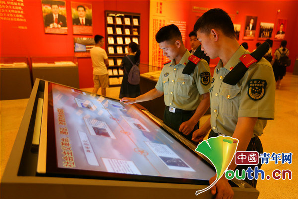 在展厅里,官兵们认真观看马克思革命实践和理论贡献的文献、手稿、照片,在电子图书阅读中体味最原汁原味的经典著作,并在“马克思主义中国化的光辉历程”展厅感受马克思主义理论中国化的成功实践——中国共产党带领全国各族人民走出了一条符合中国国情的特色社会主义道路的成功。