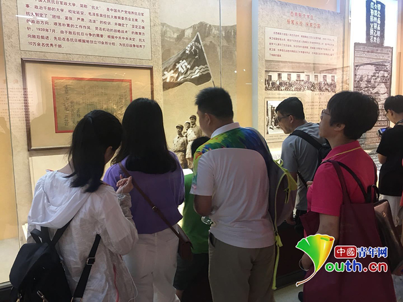 来自河北廊坊的韩老师和学生一起参观抗战馆。中国青年网见习记者 李虹静 摄
