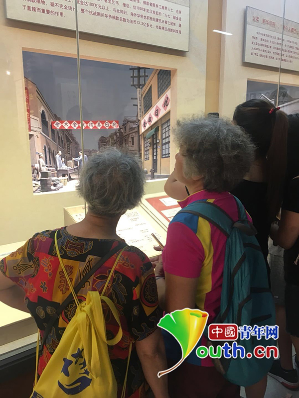 60多岁的刘奶奶和管奶奶是从湖南来北京的游客,她们特地向旅行社要求来看抗日战争纪念馆。管奶奶眼睛不太好,刘奶奶就一幅幅照片向管奶奶解释。讲着讲着,管奶奶开始默默地抹眼泪,就这样,她们一个讲述,一个哭泣,两个老人互相搀扶着走出了展馆。在参观过程中,情到深处的管奶奶把有的展品拍了下来,说是要拿回去给孙子看,告诉他别忘了这些苦难的日子。
