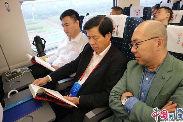 在开往梁家河的列车上,“海归”人员阅读《习近平的七年知青岁月》一书。中国网记者 金慧慧 摄