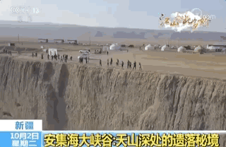 冰雪融化形成的河流将山脚下的平原,切割成最深处达400米的悬崖,崖壁几乎成90度,站在峡谷上向下俯瞰,安集海河将大峡谷雕刻成一道道错落有致的沟壑,其中最宽处达一公里,而最窄处仅有二三米,让人不禁感叹大自然的鬼斧神工。