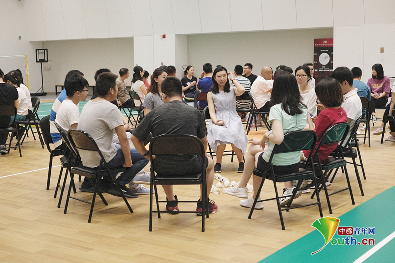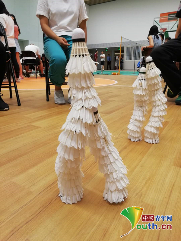 “爱的积累”环节,嘉宾们用“相依相偎”的方式固定羽毛球,寓意美好。中国青年网通讯员庞智今摄