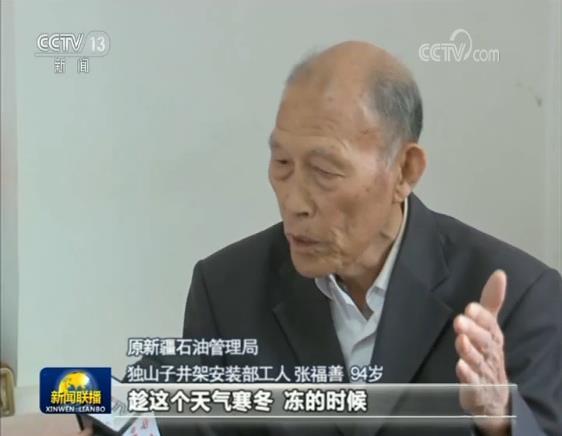 克服缺水、极寒以及物资匮乏等困难,1955年10月29日,张福善老人参与建设的克拉玛依1号井喷出高产工业油流,宣告了新中国成立后第一个大油田的诞生。