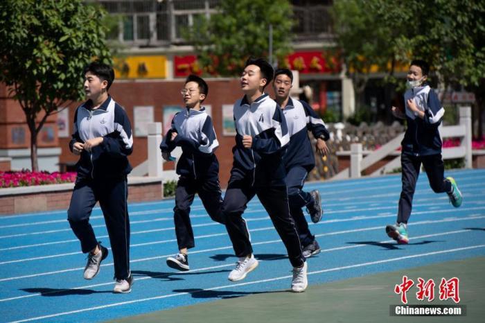 资料图:5月11日,山西省太原市育英中学,返校复课的高一年级学生在操场上体育课。中新社记者 韦亮 摄
