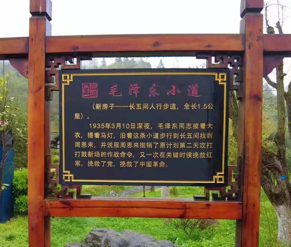 1935年3月10日夜,在苟坝村一条崎岖狭窄的小道上,毛泽东同志手提马灯,连夜去找周恩来同志再商红军将要进行的一场战役的作战计划。一场战役看起来不是重大决策,但当时当事,这场战役与中国革命命运紧紧相连,因而事关重大。历史的“关节点”常常出现在不经意间,苟坝的这条“小道”连着的正是中国革命的“正道”。今天,人们将毛泽东同志走过的这条小道,亲切地称为“毛泽东小道”。