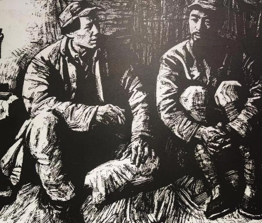 版画《毛泽东深夜到周恩来住处做说服工作》