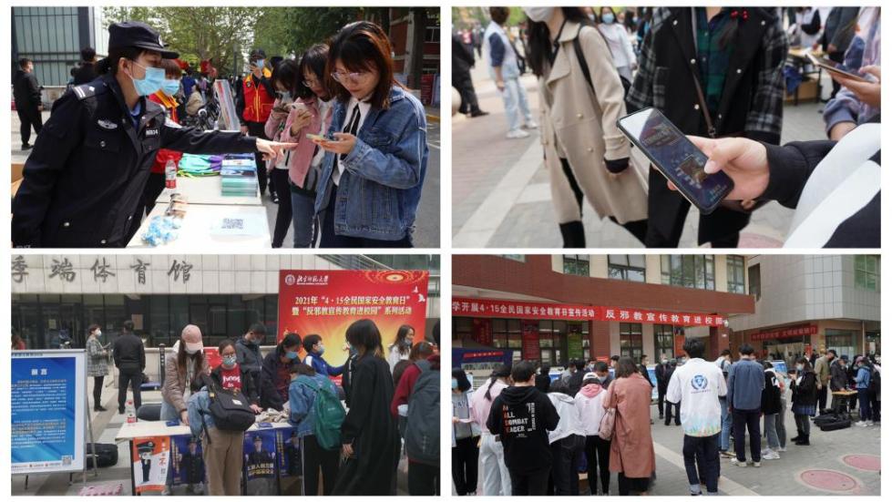 当天,由北京市公安局等单位协办的“反邪教宣传教育进校园”活动在北京师范大学、首都师范大学拉开帷幕,通过校园网、现场会等形式向师生宣传此次活动动态,并在校园人流密集地段设置海报展板、扫码关注、资料领取、比赛答题和VR 体验等区域,多渠道宣传反邪教相关知识和案例,吸引了广大师生的广泛关注和积极参与,取得了良好的宣传效果。