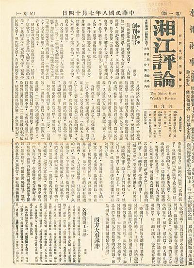 毛泽东:以《湘江评论》为平台 支援北京学生