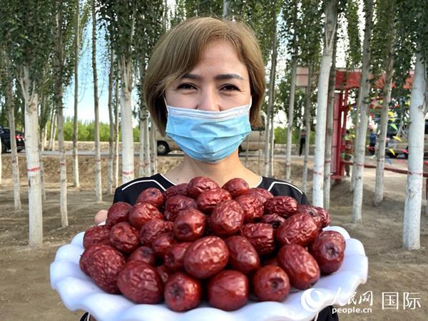 央塔克乡枣农。人民网 张荣摄