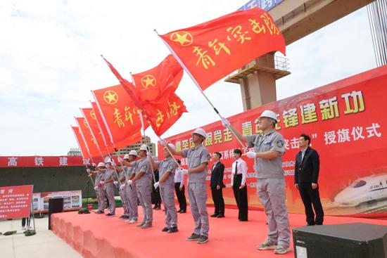 4月20日,“高举团旗跟党走 青年先锋建新功”新建福厦铁路装配式桥面系样板工程“青年突击队”授旗仪式在泉州惠安举行。