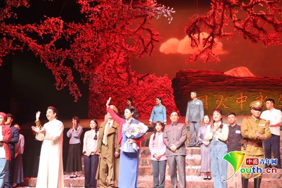 川剧《烈火中永生》演出结束后,演员们谢幕。 中国青年网记者 韩玉 摄