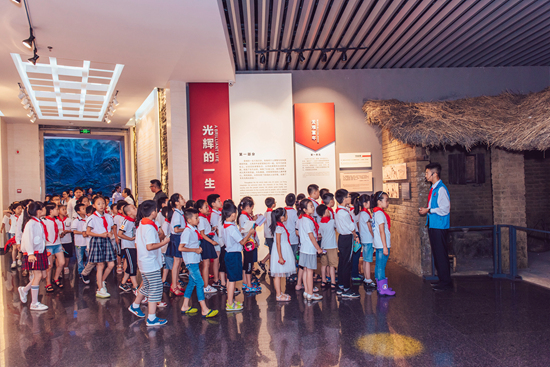 “全国小雷锋夏令营”的同学们在抚顺市雷锋纪念馆聆听小志愿者讲述雷锋事迹。 抚顺市雷锋纪念馆供图