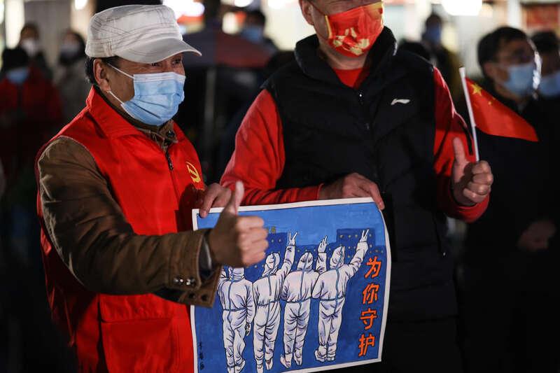11月23日凌晨,刚刚解封的封控区现场,成都市民李在荣将自己手绘的漫画送给抗击疫情一线工作人员表达敬意。汪龙华/摄