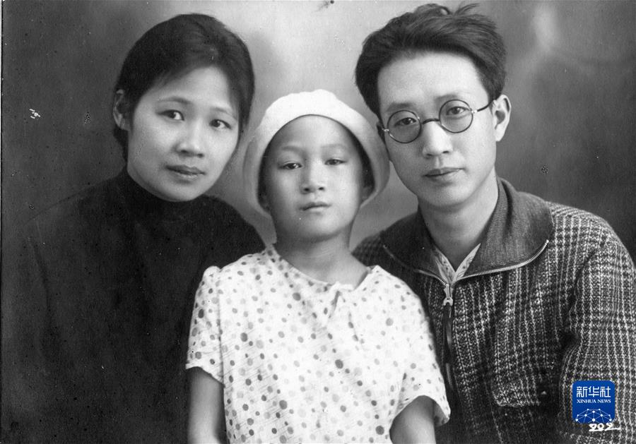 瞿秋白从德国返回莫斯科时与夫人杨之华及女儿瞿独伊合影。新华社发