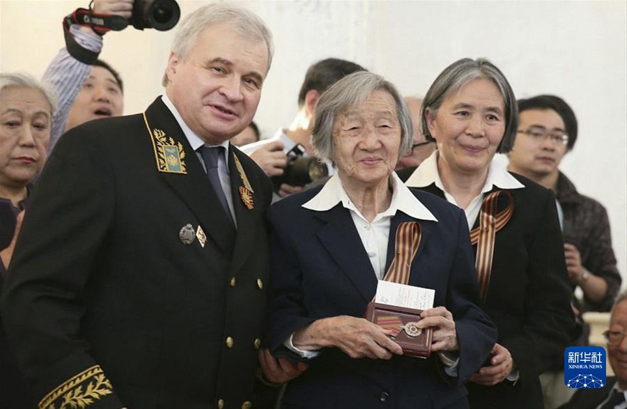 2015年4月,瞿独伊获颁俄罗斯卫国战争胜利70周年纪念奖章。新华社发