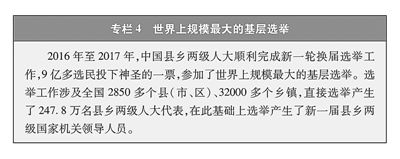 中国的选举是广泛的,有国家机构选举、村(居)委会选举、企事业单位职工代表大会选举等,涵盖了国家政治生活和社会生活的各个方面;中国的选举是平等的,人民的选举权和被选举权得到充分保障,一人一票、票票等值;中国的选举是真实的,不受金钱操控,选民按照自己的意愿选出自己信任的人;中国的选举是发展的,选举形式手段随着经济社会的发展不断创新和丰富。