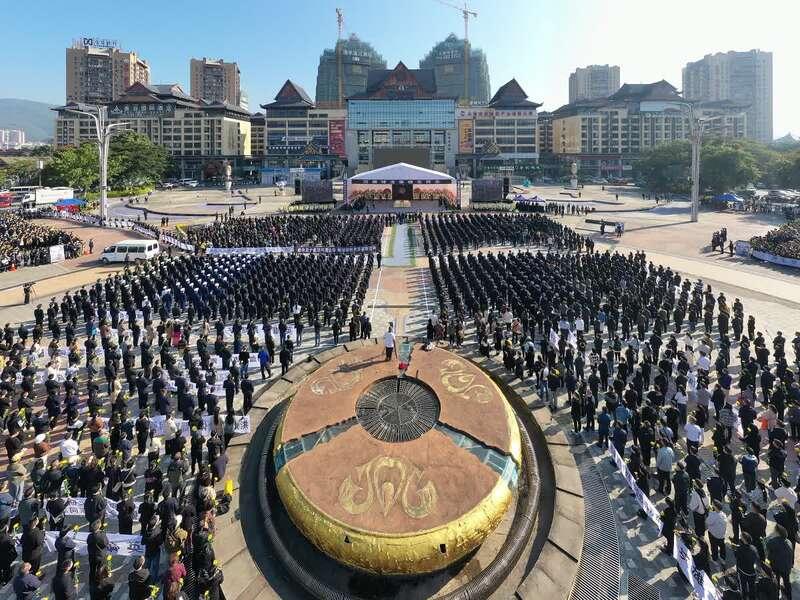 12月8日上午10时30分,边境缉毒英雄、移民管理警察蔡晓东遗体送别仪式在云南省西双版纳州景洪市泼水广场举行。