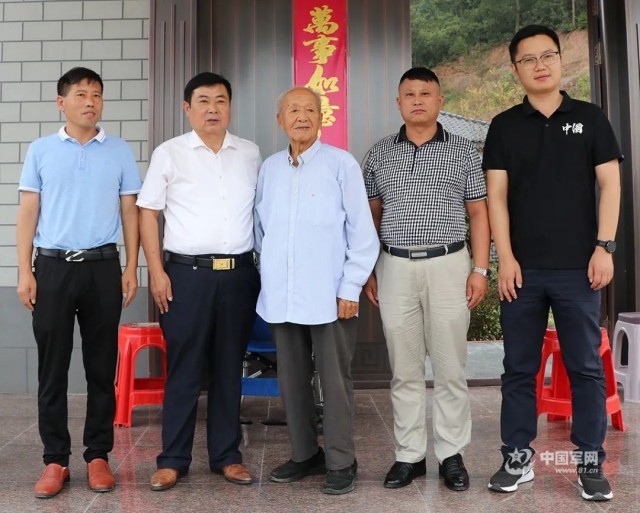 胡正先(中)与安徽省六安市裕安区退役军人事务局工作人员合影。赵度俊 摄