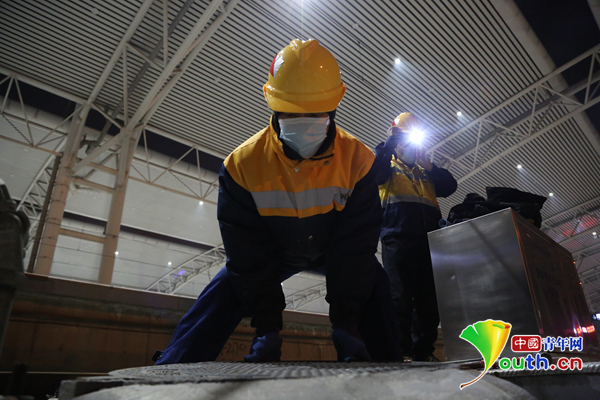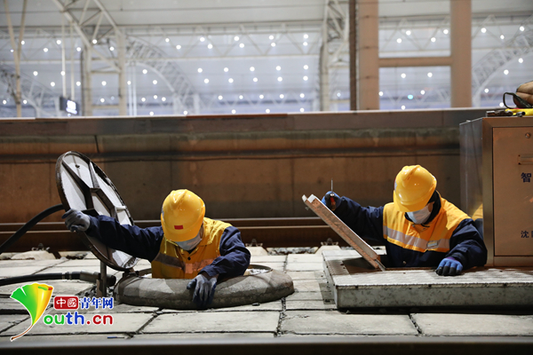 中国青年网北京1月25日电(记者 纪佳琦 通讯员 杨丽 关贺贺 崔凯 王强)1月21日凌晨0时20分,三名铁路人在长春站内高铁站台下不停地忙碌着,掀开上水井盖,钻进井内查探,抽出水管排水等一系列动作,有条不紊地进行着。他们头戴黄色安全帽,化身铁路“马里奥”,在深夜出动,保障着高铁列车的用水供给,他们是中国铁路沈阳局集团有限公司长春房产段客车给水作业队成员。