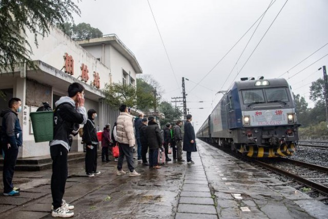1月27日,旅客在位于重庆永川区何埂镇石笋山村的柏林站等车。新华社记者 唐奕 摄