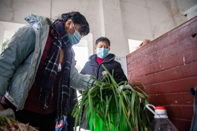 1月27日,旅客在“慢火车”上摘菜。新华社记者 唐奕 摄