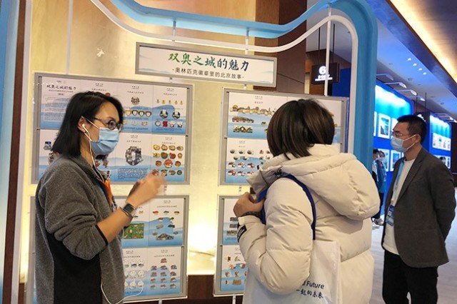 记者观察到,在徽章展示区,北京2022年冬奥会的特色徽章成为了大家关注的焦点。例如,“中轴线倒计时”系列徽章,将北京中轴线申遗点与北京冬奥会倒计时进程完美结合;“中国传统节日”系列徽章,以不同节日特有的风俗、饮食以及脍炙人口的民间故事为创作主线进行绘制,颇受外籍人士喜爱。