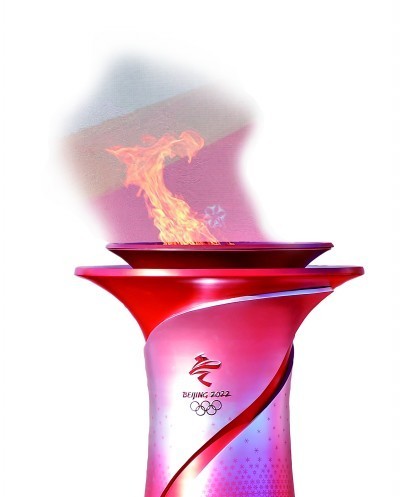北京冬奥会火炬“飞扬”颜色为银色与红色,象征冰火相约,激情飞扬,照亮冰雪,温暖世界。火炬以祥云纹样打底,自下而上从祥云纹样逐渐过渡到剪纸风格的雪花图案,旋转上升,如丝带飘舞。火炬纹样设计既体现了“双奥之城”的传承,又蕴含着道法自然、天人合一思想。火炬交接时,两只火炬的顶部可以紧密相扣,这既是设计上的奇妙创新,又象征着不同文明交流互鉴,让世界更加相知相融的冬奥愿景。