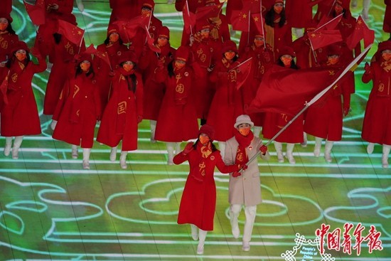 2月4日晚,第二十四届冬季奥林匹克运动会开幕式在北京国家体育场举行,中国代表团入场。 中青报·中青网记者 李隽辉/摄