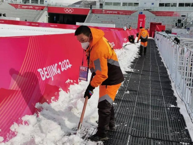 “针对这个方面我们也做了大量应急预案,之前也做过很多次应急演练。我们已经安排好了很多个班次,工作人员轮流上岗去对轨道进行吹雪和除冰工作,保证地轨缆车能够在赛时保障运动员顺利上山。”