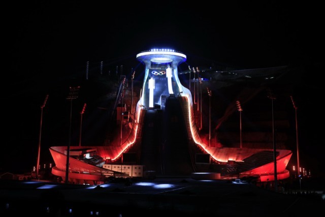 张家口赛区国家跳台滑雪中心夜景。新华社记者杨世尧摄