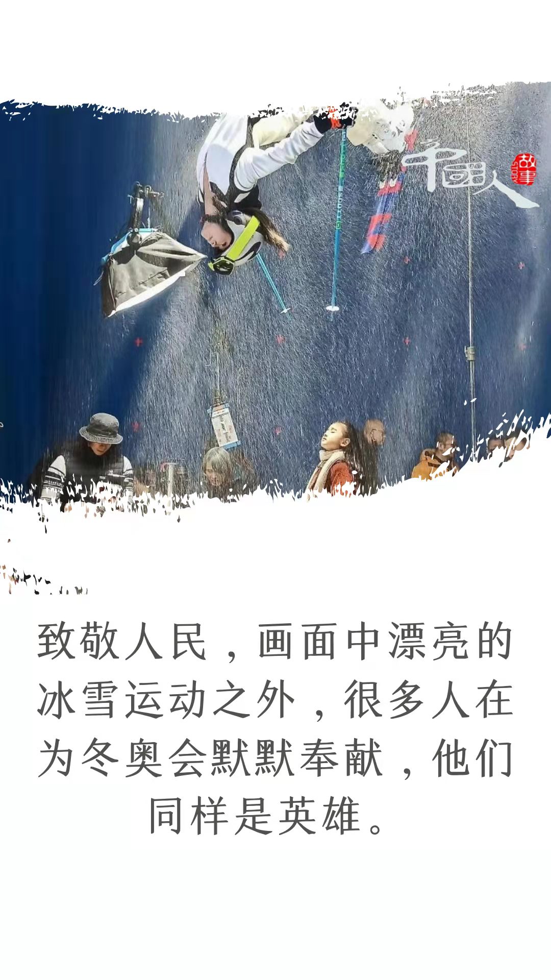 冰雪运动总是与浪漫连接在一起的。“我们在画面中体现出的中国式的浪漫,能不能得到别人的认可?有同感,那就是最好的效果。”有着多年拍摄经验的龙江波很看重这一点,“如果你的手段很高深,别人却不知道你在玩什么,那就糟糕了,网友就会吐槽。”