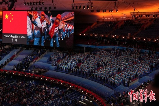 3月4日,北京冬残奥开幕式,中国队入场时,全场观众起立欢呼。 中青报·中青网记者 李隽辉/摄