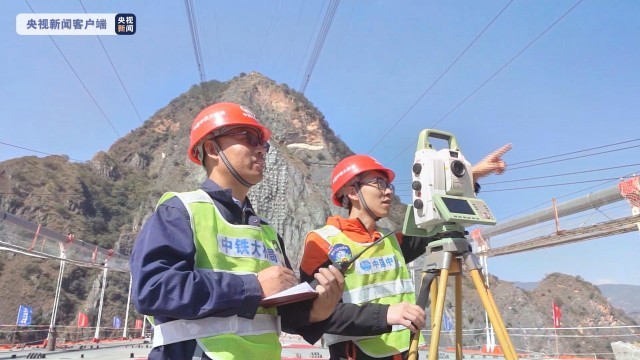“大桥桥面距拼装场高差达320米,100余层楼的高度。尤其是楚雄岸27号梁段,架设方式为分离式钢箱梁入洞滑移架设,施工难度属国内罕见。”岳万友介绍,为保证如期完成钢梁架设任务,施工团队坚持“高起点谋划、高标准建设、高效率施工”的建设理念,科学组织、精细优质施工,对缆索吊、猫道系统专用吊具等进行专门设计与实地优化,充分依托“建桥国家队”的技术优势,确保相关施工措施结构安全、合理。架设过程中,项目团队严格落实“一吊一检”制度,钢箱梁吊装各个位置进行网格化盯控把关,保证钢箱梁的线形及位置精确。针对入洞滑移架设难题,建设者结合实际,创新性采用纵向辅助牵引加天车跟随牵引的方式进行架设,多举措保证钢梁架设工作安全高效。