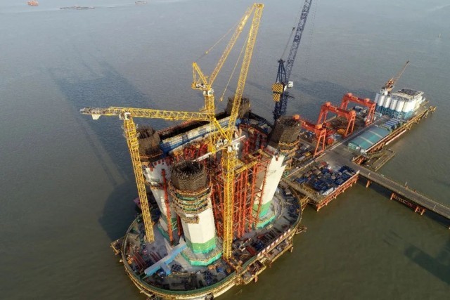 江苏常泰长江大桥主航道桥正在加紧施工。