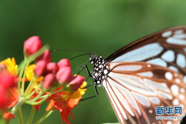 西双版纳州景洪市野象谷,一只蝴蝶正在吸食花蜜(摄于2月26日)。新华网发(李云生/摄)
